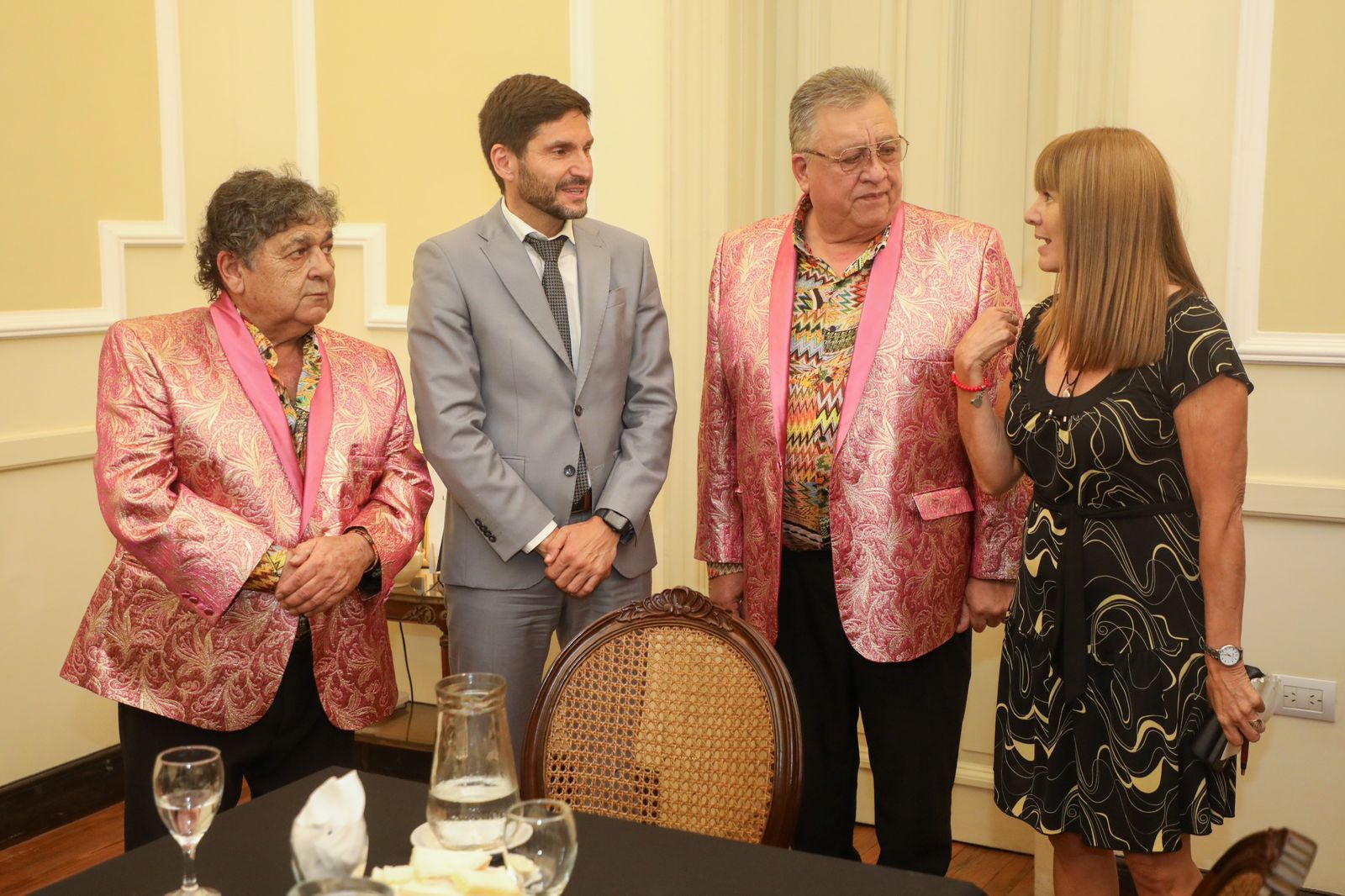 El gobernador Maximiliano Pullaro dedicó unas palabras a los integrantes del grupo musical al señalar que “para quienes somos de pequeños pueblos nos cautivaron, son lo que está bien, porque han tenido una trayectoria destacada y han hecho siempre, pero siempre quedar bien a su ciudad y a toda la provincia de Santa Fe”. Y amplió: “Ustedes realmente representan la santafesinidad, porque representan el trabajo, la cultura del esfuerzo, el nunca quedarse y siempre seguir adelante; en ponerle el pecho a las adversidades. Y hoy no solo son embajadores de Santa Fe, una marca argentina; sino son quienes van a poner en lo alto a la bandera de la invencible provincia de Santa Fe”.